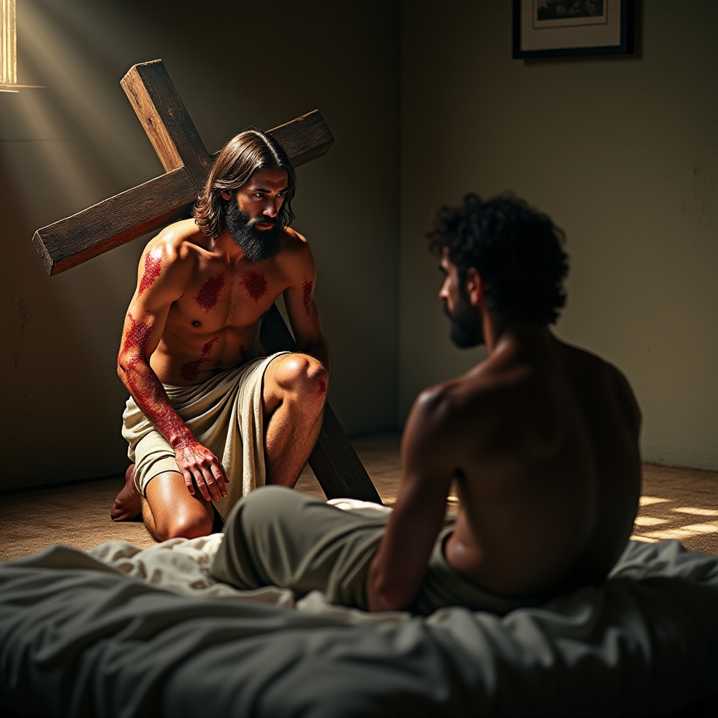 When he was close to finishing the book he had been commissioned to write, which he called Gotas de Agua Viva, the founder of this movement was given the undeserved honor of receiving the visit of Jesus from Calvary in person. It is not yet explained how Jesus could have manifested his live presence twenty centuries later. Not all the rules of physics have yet been discovered, but the fact remains that the founder had the providence to feel, look, and listen to Jesus in the depths of his room one day, when he was in a state of collapse and found no way out of his grief. He felt no fear, nor any kind of dread. He lacked the strength to experience these emotions; rather, he concentrated on capturing the desperation and anguish shown by a bleeding Jesus, who wore a pleading look because of the burden he was carrying. We do not know why he chose the author to make these requests, nor do we know if he also presented himself to others, in different circumstances and with complementary messages. Jesus, however, burdened with the Cross and with latent suffering, was at the back of the room: this was a reality. He spoke these words: Help me, Stenka, to carry this Cross.